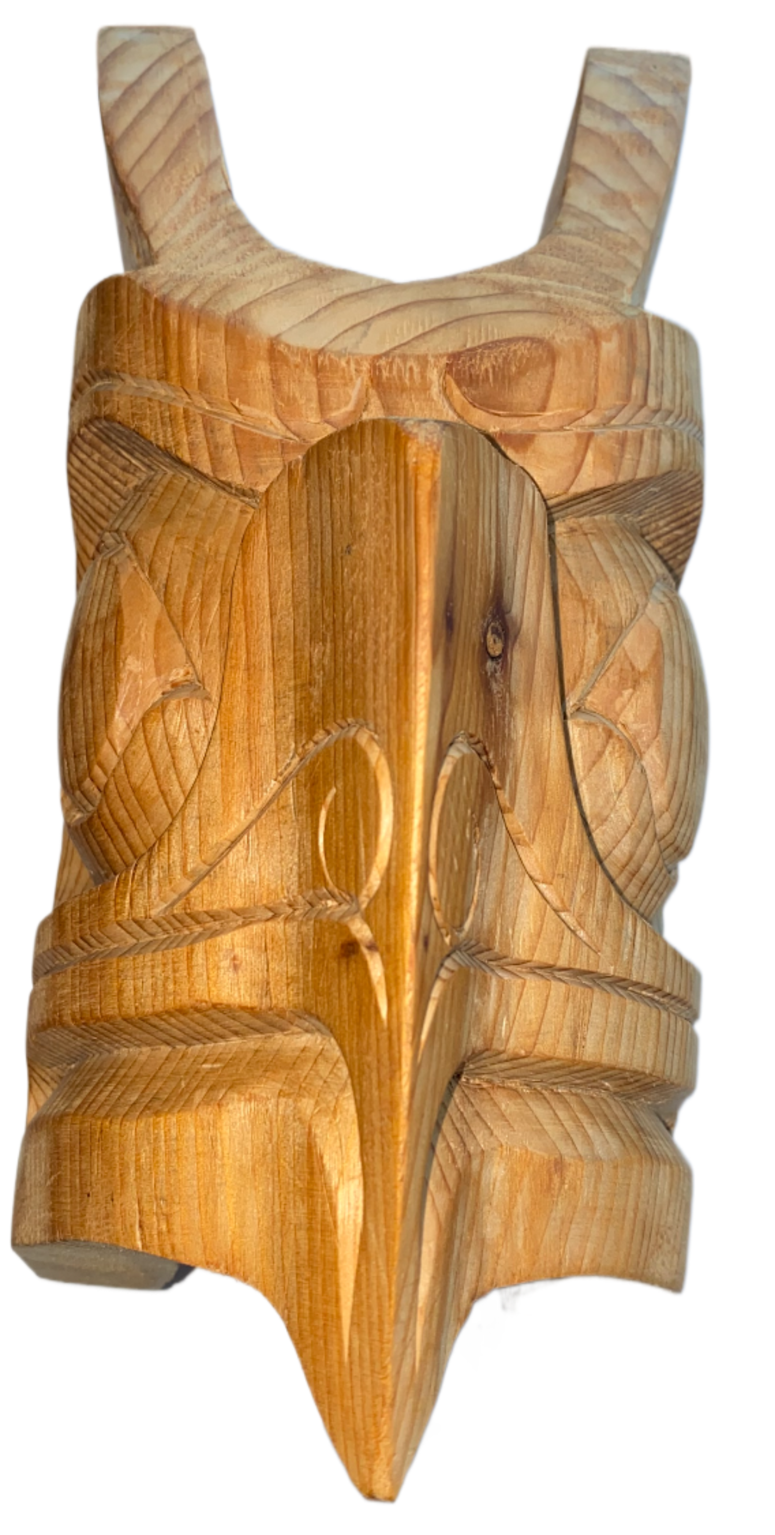 A Cedar 3-D carving using traditional West Coast Indigenous art in the shape of an eagle mask